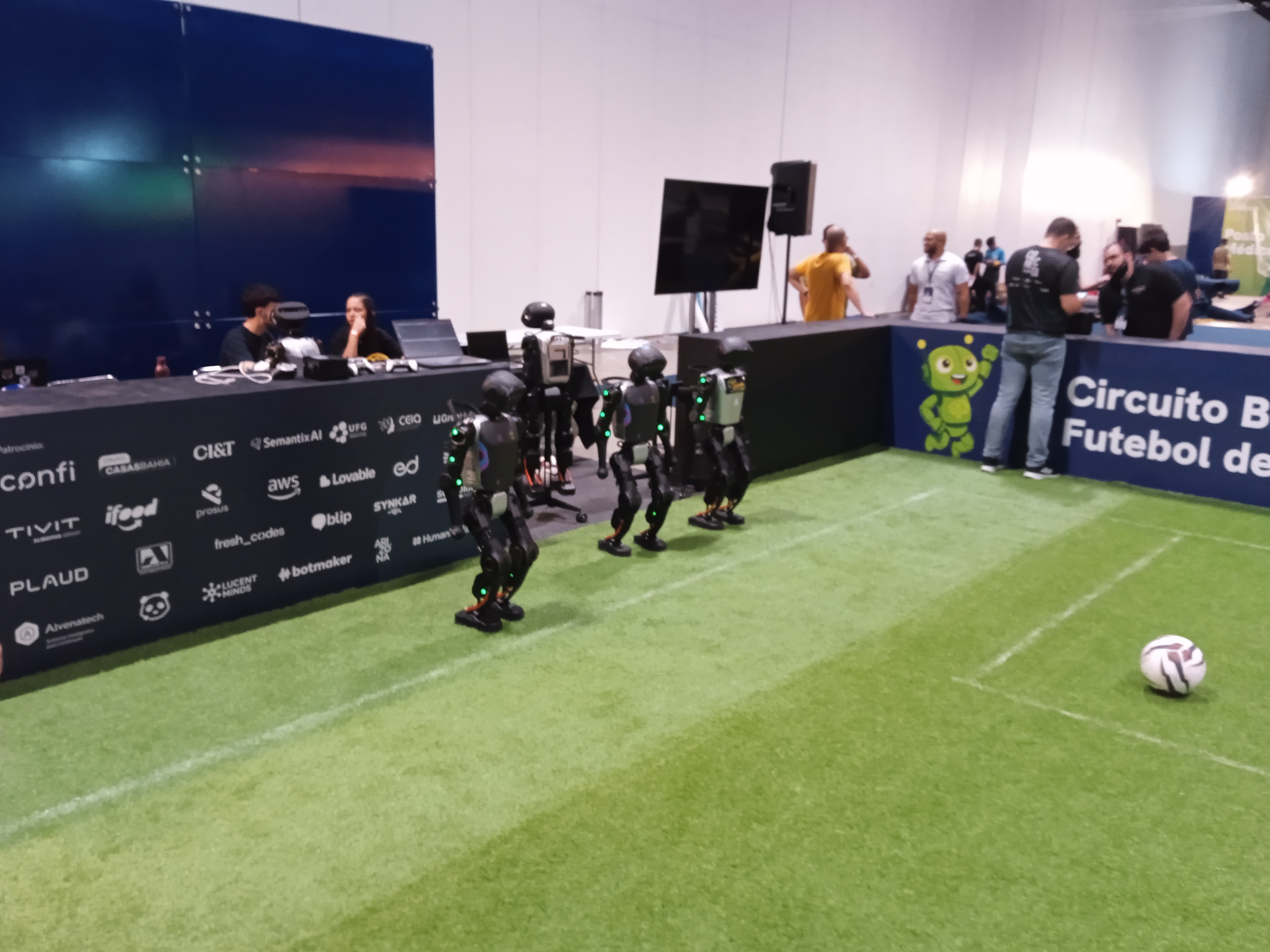 Na liga humanóide dois times, com três robôs cada, competem entre si com regras próximas do futebol. Os robôs dessa liga são robôs bípedes com aparência humanóide.